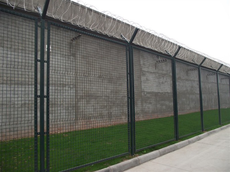 所謂監(jiān)獄圍墻加高網(wǎng),是指在現(xiàn)有的混凝土圍墻上面安裝圍欄網(wǎng)的意思。因?yàn)?,現(xiàn)有的圍墻高度不能滿足需要。所以需要增加高度,用以防止攀爬或者翻越。而用于加高網(wǎng)的立柱則一般為法蘭盤立柱,采用膨脹螺絲固定的方式。網(wǎng)片則更多采用雙邊護(hù)欄網(wǎng)、框架護(hù)欄網(wǎng)和三角折彎護(hù)欄網(wǎng)的樣式。網(wǎng)孔和鐵絲直徑則根據(jù)需求者的用途訂制。