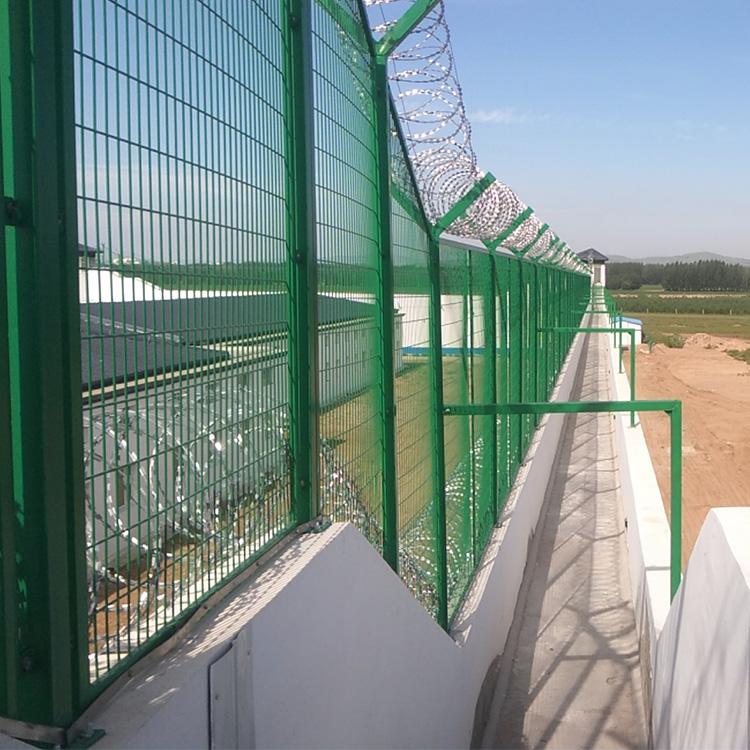 監(jiān)獄警戒圍墻隔離網(wǎng)一般都采用邊框型,這樣的生產(chǎn)形勢(shì)也是為了增加網(wǎng)片的牢固度,網(wǎng)孔可以焊接成正方形、長(zhǎng)方形,也可以焊接成菱形,也可以直接采用刀片刺繩焊接網(wǎng)或鋼板網(wǎng)材料的網(wǎng)片,然后在網(wǎng)片的基礎(chǔ)上四周焊接邊框,最后進(jìn)行pvc浸塑或噴塑處理。